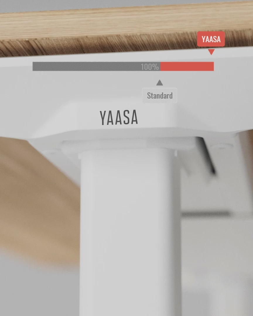 Yaasa standing desks are built to handle heavy loads. Their robust frames and premium materials ensure long-lasting stability—even when fully extended—making them a reliable choice for demanding work setups.