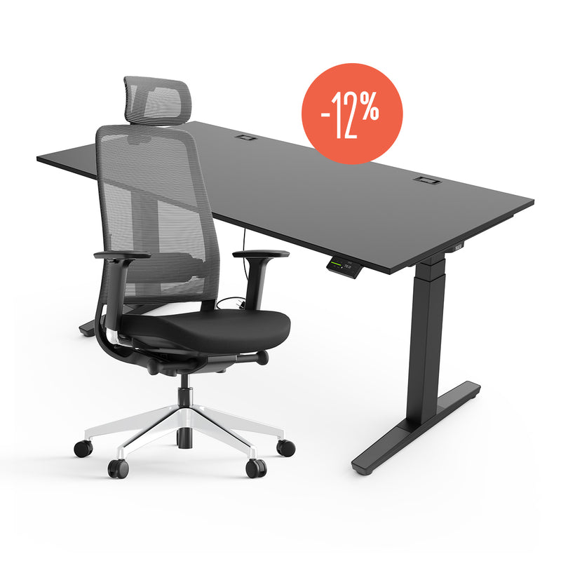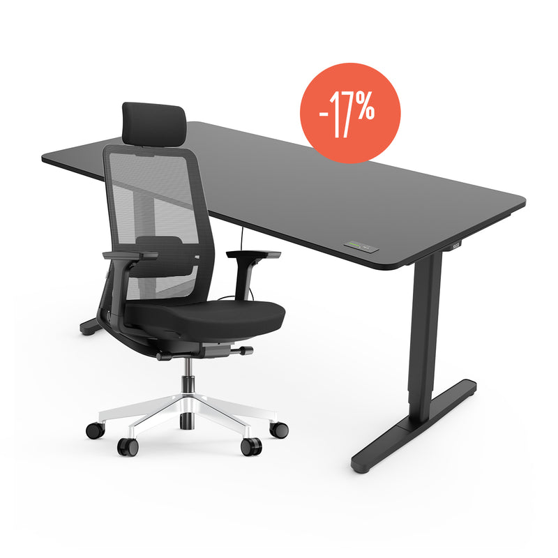 Discover our set deals including a height-adjustable desk and office chair. Put together your desired design and benefit from great discounts - including an eye-catching look.