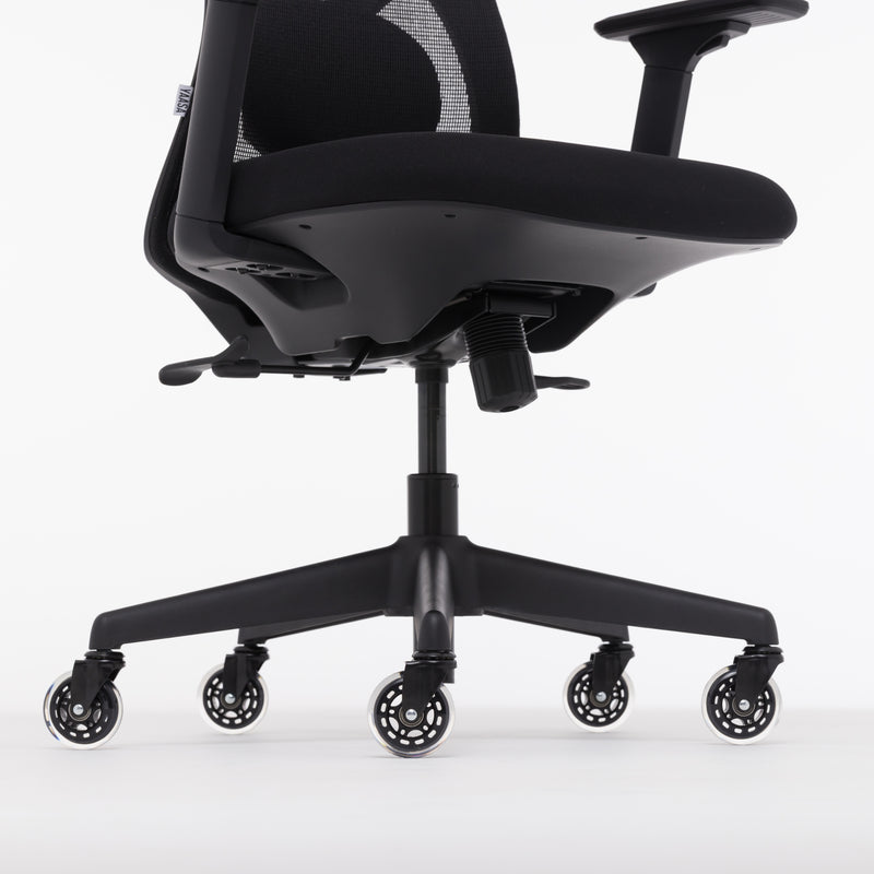 Depending on your home or work setup, you can equip your Chair Plus with universal casters or noise-canceling casters. Both options ensure smooth, controlled movement without scratching the floor. The noise-canceling casters are especially quiet and particularly well suited to uneven surfaces.